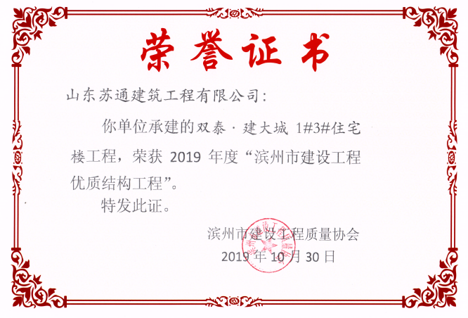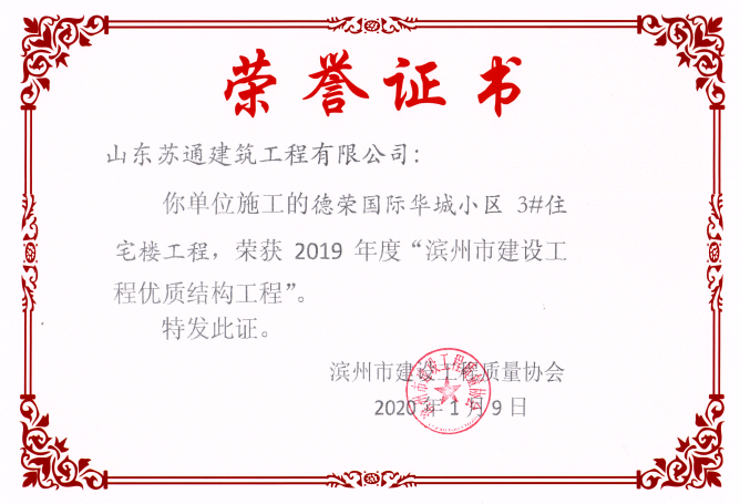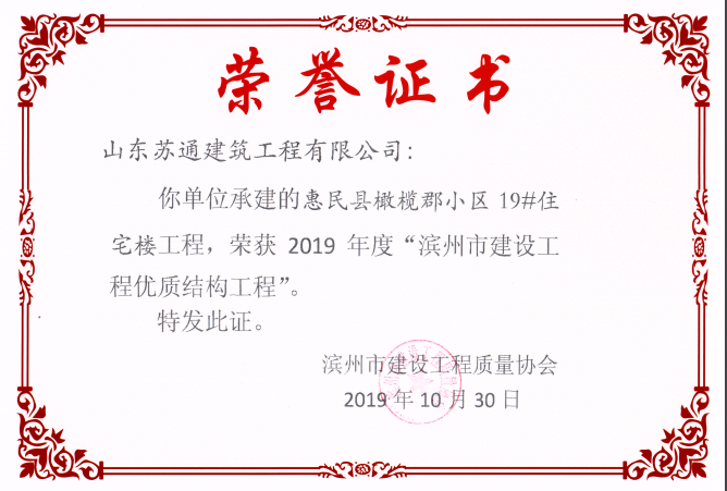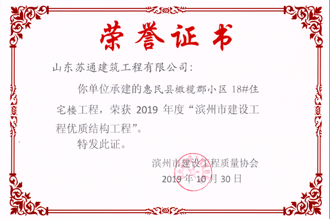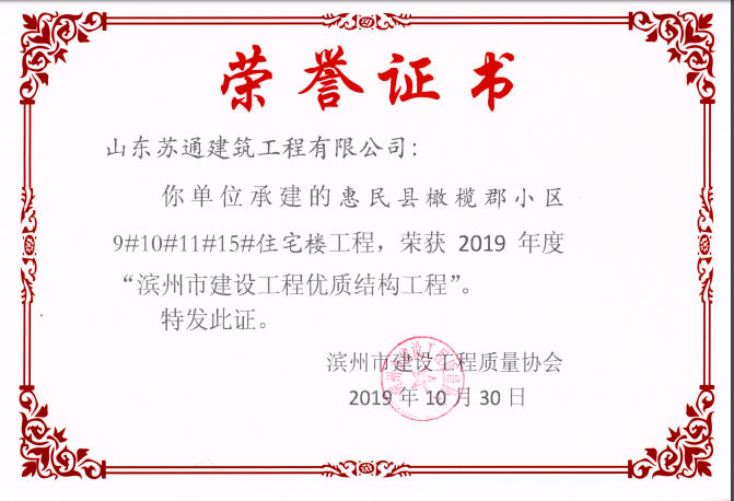 山東蘇通建筑工程有限公司,創(chuàng)建于2009年8月。目前擁有房屋建筑工程施工總承包壹級、市政公用工程施工總承包叁級、水利水電工程施工總承包叁級資質(zhì),同時(shí)還具有建筑裝修裝飾工程專業(yè)承包貳級、消防設(shè)施工程專業(yè)承包貳級、鋼結(jié)構(gòu)工程專業(yè)承包叁級、建筑機(jī)電安裝工程專業(yè)承包叁級等專業(yè)承包資質(zhì)。 公司總部坐落于山東省濱州市濱城區(qū)黃河十二路877號,現(xiàn)有辦公面積約2000平方米,機(jī)構(gòu)設(shè)黨支部工會(huì)辦公室、總經(jīng)理辦公室、綜合辦公室、工程管理部、經(jīng)營預(yù)算部、資產(chǎn)財(cái)務(wù)部、材料設(shè)備部、運(yùn)行管理部、法律事務(wù)部等多個(gè)職能部門。公司管理體系已經(jīng)通過了GB/T 19001及GB/T 50430質(zhì)量管理體系、GB/T 24001環(huán)境管理體系(EMS)、GB/T 28001職業(yè)健康安全管理體系(OHSMS)等體系的認(rèn)證。 公司承建完工了濱州市建大教師之家、建大清怡苑、香格里拉水岸綠城住宅小區(qū)、雙泰建大城、曲阜崇德公館住宅小區(qū)、北海新區(qū)御景藍(lán)灣住宅小區(qū)、沾化德榮國際華城住宅小區(qū)、惠民橄欖郡住宅小區(qū)等工程項(xiàng)目,目前在建工程項(xiàng)目有:濱州市頤高國際電子商務(wù)產(chǎn)業(yè)園住宅小區(qū)項(xiàng)目、濱州市東盛國際項(xiàng)目、高新區(qū)建大中央華府住宅小區(qū)項(xiàng)目、濱州市融匯新里程住宅小區(qū)項(xiàng)目、濱州市建大秦皇壹號住宅小區(qū)項(xiàng)目、濱州市森林花...